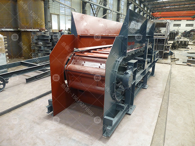 板式給礦機運轉是由電動機的轉動經過聯軸器、減速器帶動主軸裝置旋轉,并通過主軸裝置上的鏈輪與鏈條嚙合帶動鏈條上的鏈板作直線運動,達到將鏈板上的物料運送給破碎機的目的。驅動裝置通過變頻裝置調節給料速度。